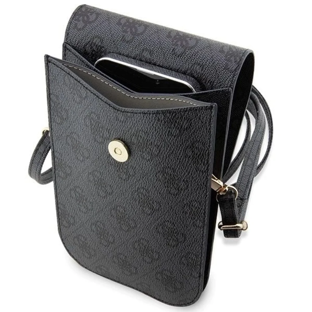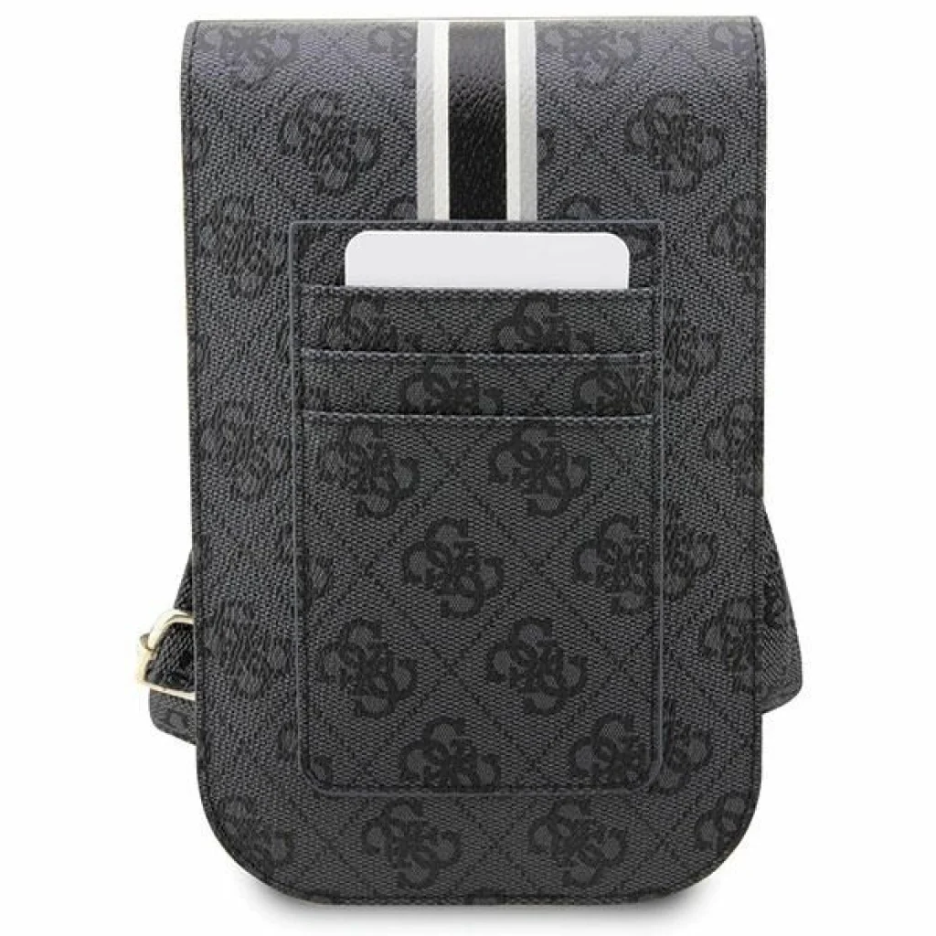 Guess handbag 4G Stripe Az exkluzív és rendkívül elegáns telefontáska a 4G Printed Stripes gyűjteményből a híres Guess divatház legújabb védőtok javaslata okostelefonokhoz. A 4G Printed Stripe kollekció új szabványokat állít a páratlan stílusnak, és vonzó dizájnt kínál, miközben biztosítja a legmagasabb szintű védelmet készülékének. A 4G Printed Stripes kollekció termékeinek kiváló minőségét a Saffiano ökológiai bőrön elhelyezett jellegzetes 4G logók igazolják - rendkívül tartós, ellenáll a sérüléseknek és a deformációnak. A nyomtatott Guess logó egy jellegzetes szíjon van elhelyezve, melynek színei tökéletesen illeszkednek a táska stílusához. A 4G elemek elválaszthatatlan motívumokként jelennek meg a márka különféle kollekcióiban. Ez egy kiváló javaslat azok számára, akik egy funkcionális és exkluzív kézitáskát keresnek, amely divatos kiegészítője a mindennapi megjelenésnek is. A táska kényelmes, erős kapoccsal zárható. Az arany szerelvények exkluzivitást kölcsönöznek az egész kollekciónak, és bizonyítják a termék exkluzivitását és hitelességét. A táska levehető, könnyen állítható vállpánttal rendelkezik. A táska belső részében három zseb található kártyák/dokumentumok számára. Az eszköz belseje két kényelmes rekeszt rejt, melyekben két telefon is elfér. A termék a Guess márka licencével készült.