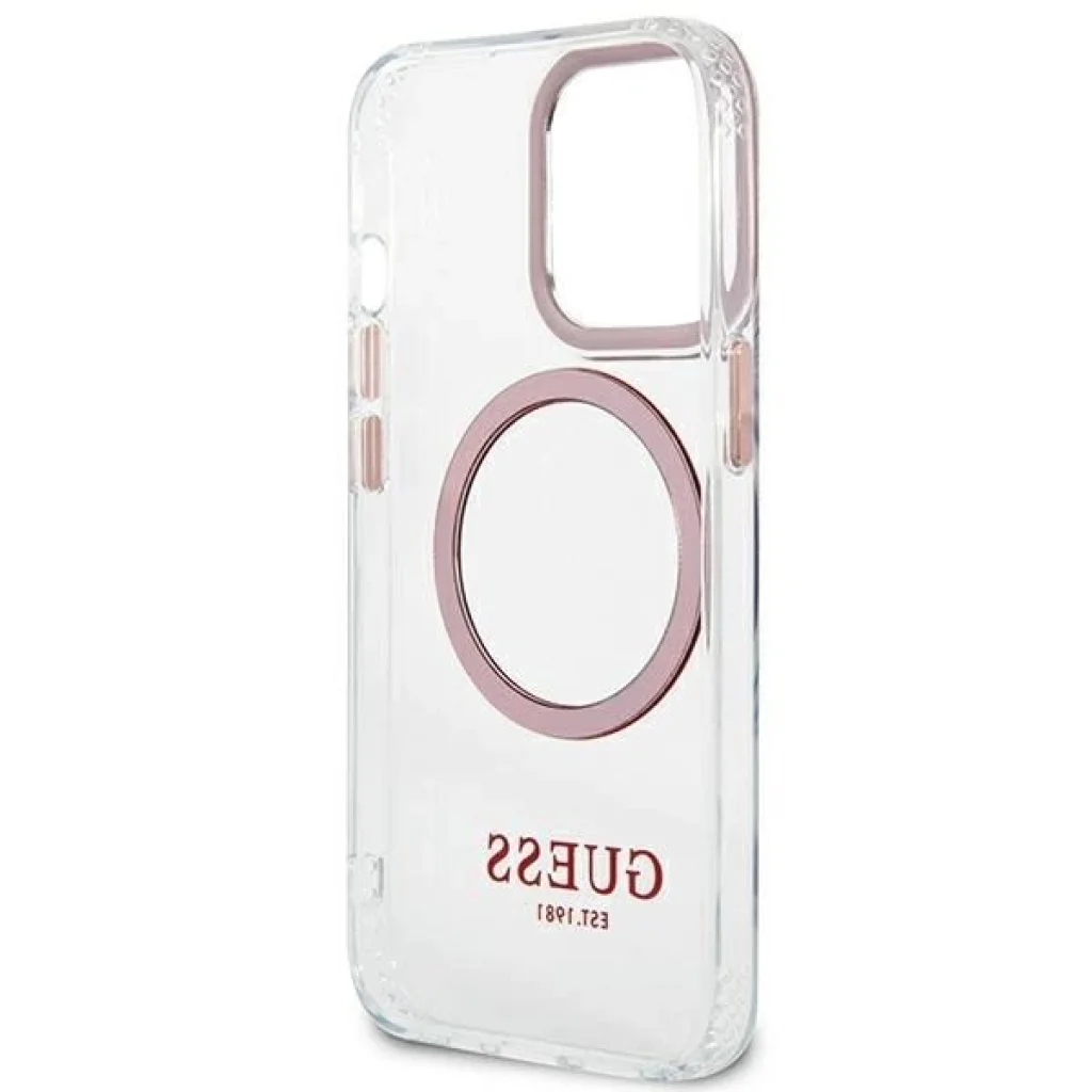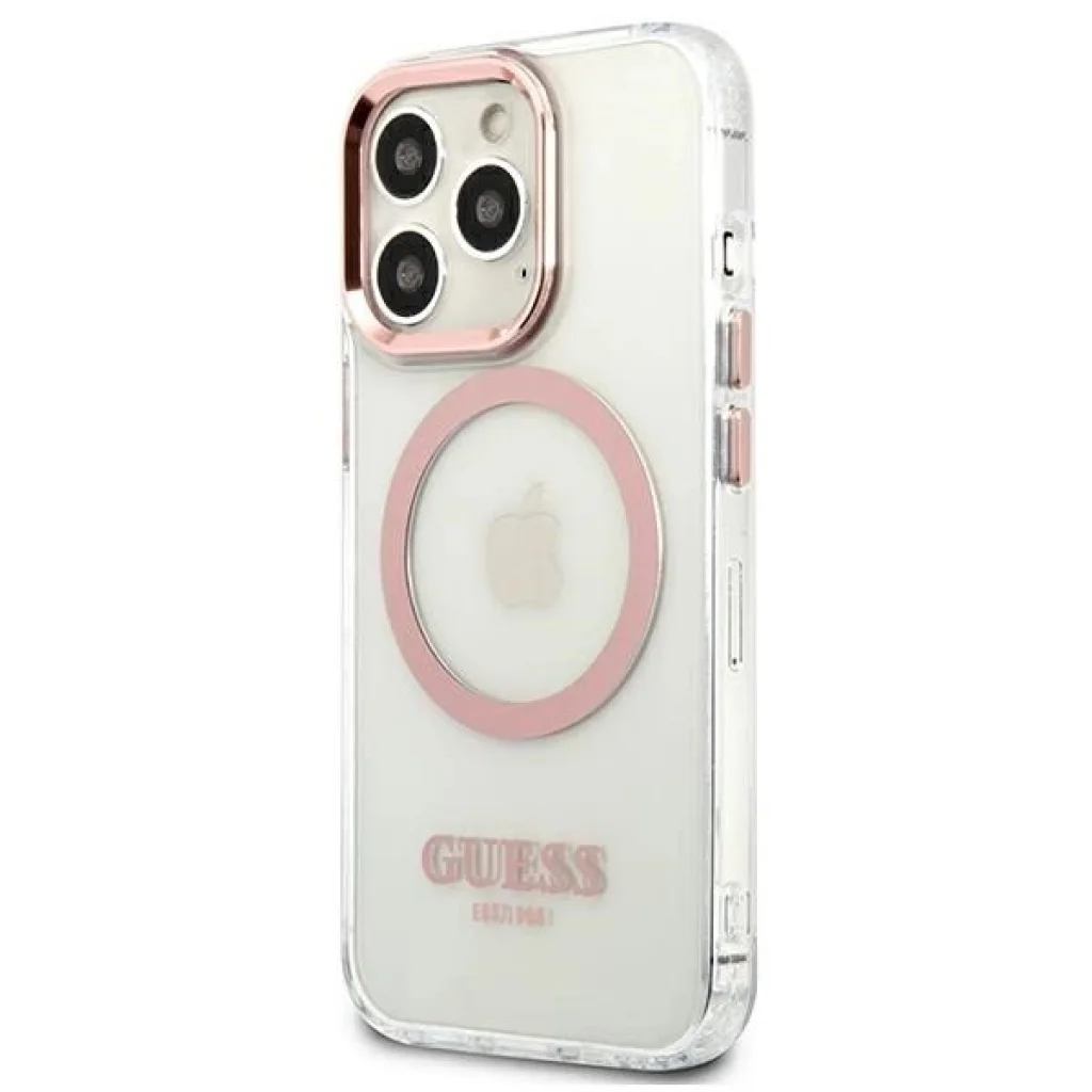 A tok tökéletesen kiemeli iPhone-od egyedi dizájnját, ezüst elemekkel díszítve, mint például az objektív kerete, a gombok és a Guess logó. A tok mágneses gyűrűvel van felszerelve, amely kompatibilis a MagSafe vezeték nélküli töltővel, így biztosítva a gyors és könnyű töltést. A mágneses gyűrű tökéletesen illeszkedik a tok színvilágához.