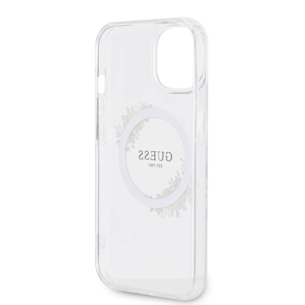 Hagyd, hogy telefonod a legjobb formájában tündököljön a Guess PC/TPU Flowers Ring Glossy Logo MagSafe tokkal.