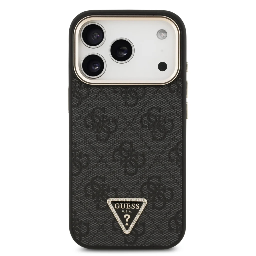 A Guess PU Bőr 4G Strass Háromszög Logó Arany Keret hátlap a tökéletes kiegészítője a telefonodnak és az öltözékednek, mivel egyesíti a funkcionalitást és a stílust.
