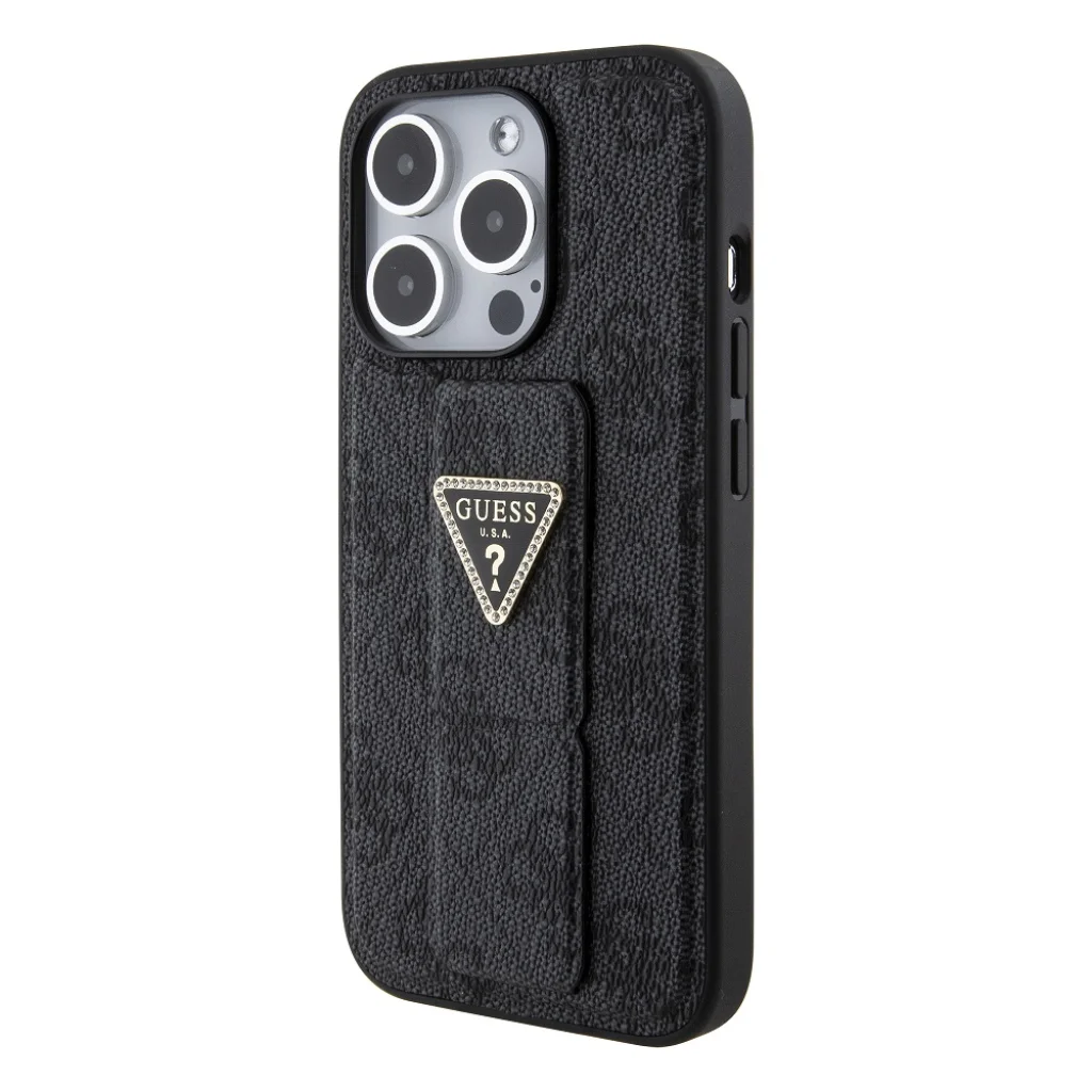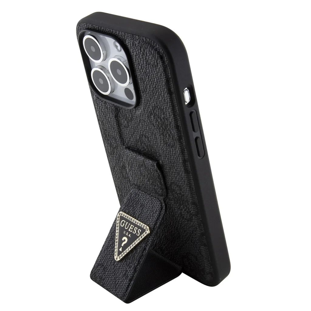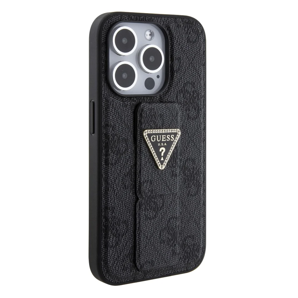 A Guess PU Grip Stand 4G Strass Triangle Metal Logo kiváló minőségű PU-ból készült, ami hosszú élettartamot és pontos illeszkedést biztosít telefonodra.