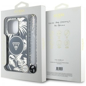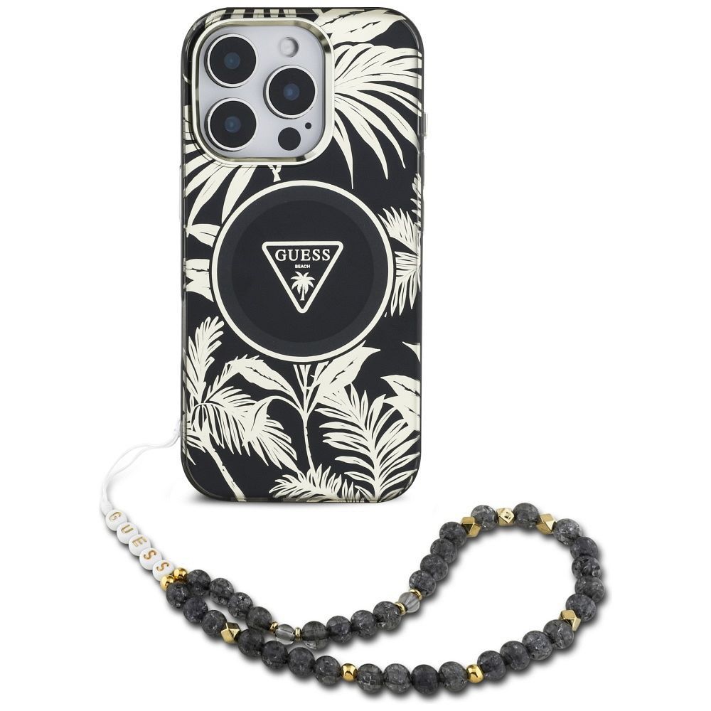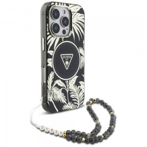 iPhone 16 Pro fekete GUESS tok MagSafe kompatibilis GUHMP16LHPCTPLSK (IML Pálmafák Háromszög Gyöngy Szíjjal)