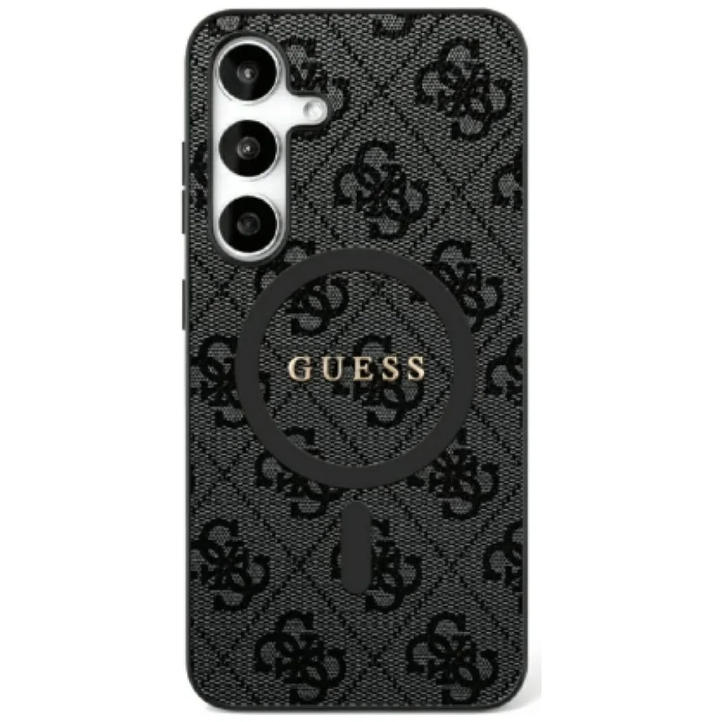 GUESS tok Samsung Galaxy S25-höz GUHMS25SG4GFRK (Mágneses PU 4G Gyűrű Klasszikus Logó) fekete tok