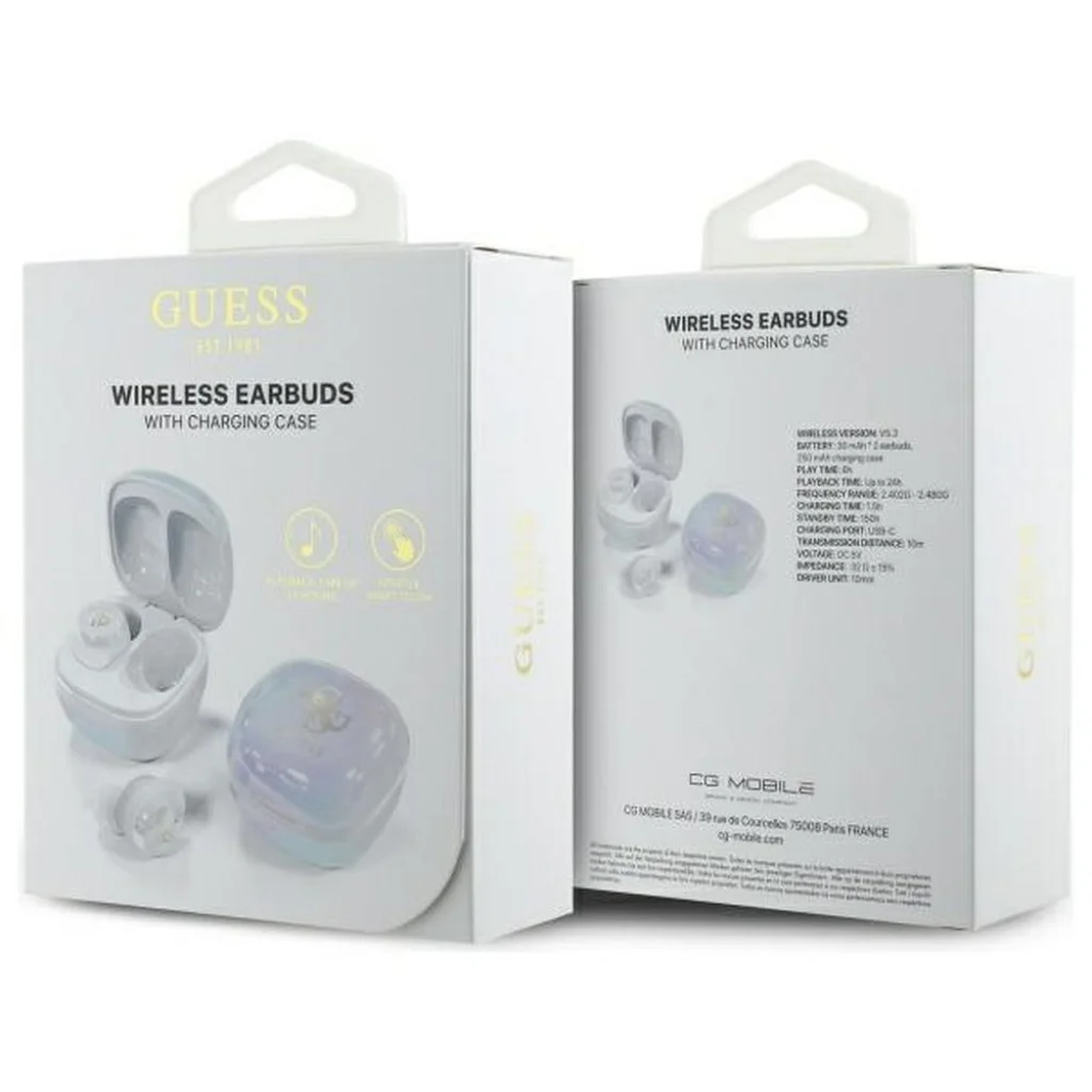 GUESS vezeték nélküli fülhallgató Bluetooth TWS GUTWSJ144ESH (Mini Iridescent 4G Printed Logo) fehér,