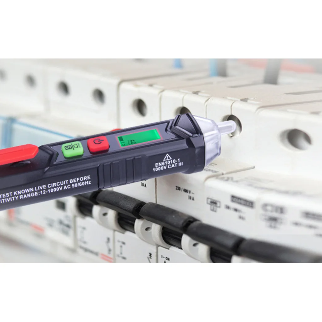 Ez az érintésmentes feszültség (NCV) és fázisérzékelő pontos mérést és biztonságos használatot tesz lehetővé. LCD kijelzővel és érzékenység állító gombbal felszerelt - nagyon kényelmes a használata. Töréspont-ellenőrzést, valamint éles és nulla kábel észlelést kínál, és 5 perc inaktivitás után automatikusan kikapcsol. A beépített LED zseblámpa megkönnyíti a munkáját. A készülék 2 db 1,5 V-os AAA elemmel működik.