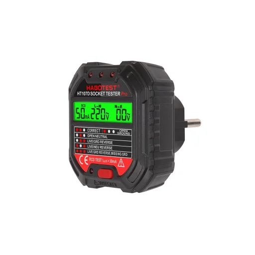 Tartsa biztonságban otthonát a Habotest aljzatvizsgálóval. Ez a kicsi és praktikus készülék digitális kijelzővel és LED-jelzővel van ellátva, amelyek a legfontosabb információkat biztosítják. A készülék tájékoztatja Önt a földelés hiányáról, és lehetővé teszi az RCD teszt elvégzését. A HT107D használatával elkerülheti a berendezései károsodását és megelőzheti más veszélyeket.