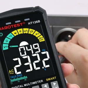 A HT126B egy okos és strapabíró multiméter a Habotest-től. Pontos méréseiről ismert, és kültéren is használható. Nagy színes kijelzővel és szilikon gombokkal van felszerelve, ami egyszerűvé és kényelmessé teszi a használatát. Kompakt és könnyű, emellett LED zseblámpával is rendelkezik, amely lehetővé teszi a sötét helyeken való munkát is. 4 darab 1,5 V-os AAA elemet igényel (nem tartozék). Használható feszültség, ellenállás, kapacitás stb. mérésére.