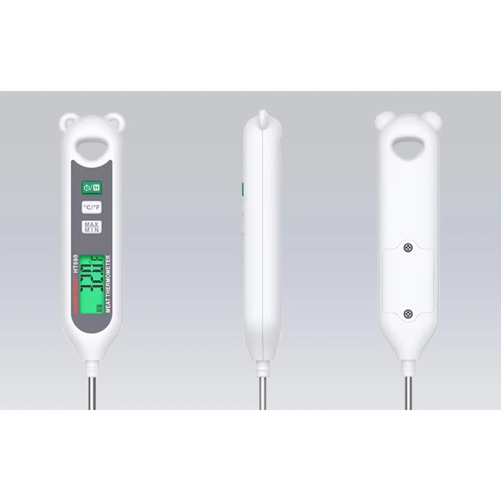 A Habotest HT690 ételhőmérő tűs szondával azonnali és pontos mérést biztosít a készülő étel hőmérsékletéről, mind az otthoni konyhában, mind az élelmiszeriparban. Széles mérési tartományával (-50°C és 300°C között) a készülék ideális sütéshez, főzéshez, grillezéshez és folyadékok hőmérsékletének ellenőrzéséhez. A könnyen leolvasható LCD kijelzőn kényelmesen ellenőrizheti az eredmények leolvasását Celsius vagy Fahrenheit fokban.