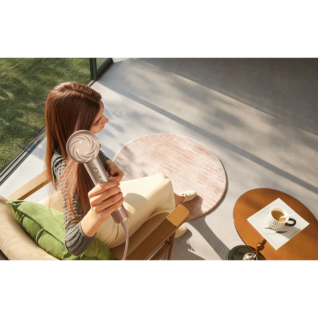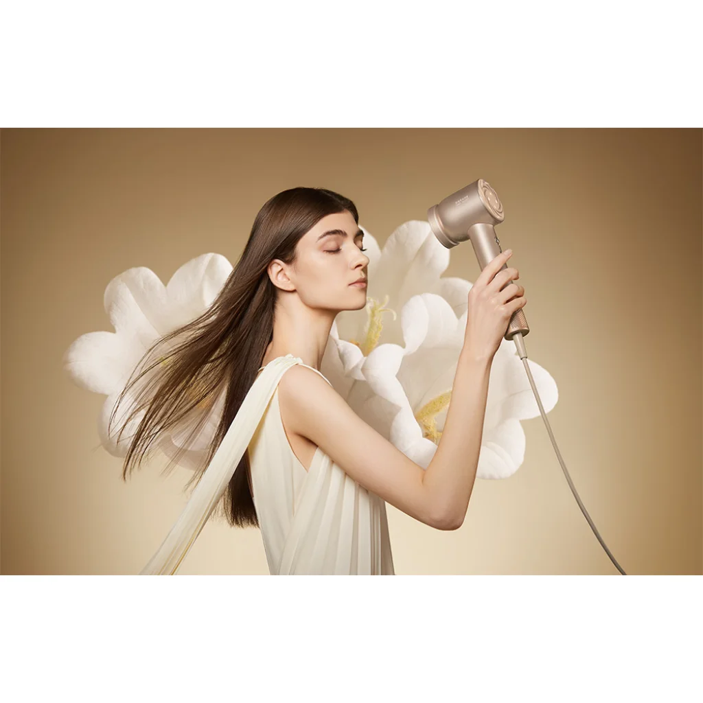 A Dreame Glory Mix hajszárító tökéletes otthoni ápolást biztosít. Az innovatív illatgyűrűnek köszönhetően finom illattal fogja körülölelni a hajadat, a mellékelt mágneses hegyek pedig megkönnyítik a formázást. A készülék gyors és egyenletes szárítást, ionizációs technológiát és pontos hőmérséklet-szabályozást kínál a fejbőr védelme érdekében. További előnye a modern, stílusos design és a könnyű, ergonomikus kialakítás a kényelmes használat érdekében.