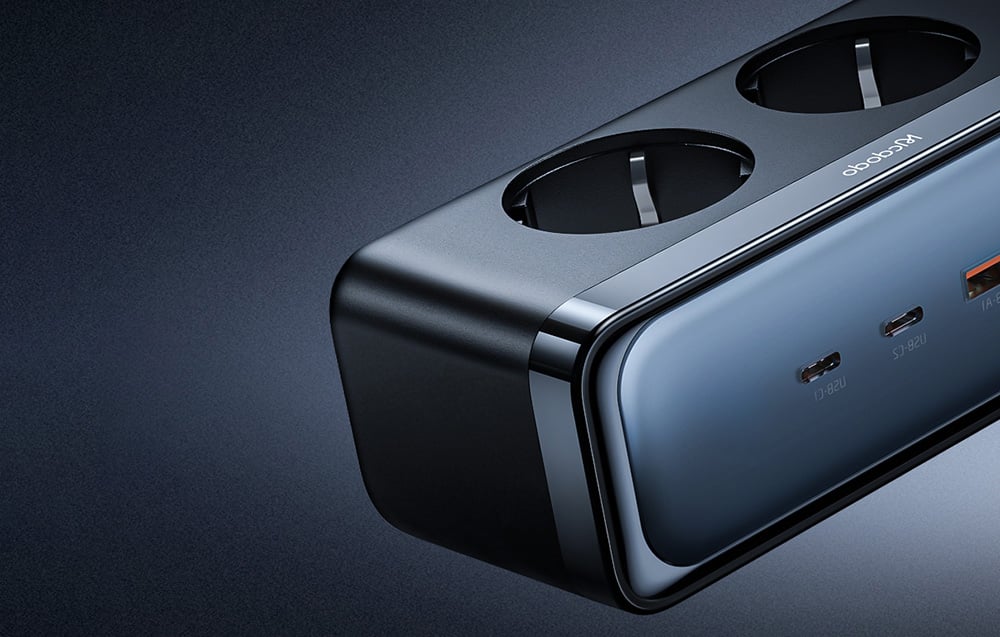 Most mindent egy kompakt eszközben érhetsz el! A Mcdodo CH-4610 elosztó két konnektorral és négy USB porttal - két USB-A és két USB-C - lehetővé teszi több eszköz egyidejű töltését és áramellátását, beleértve a okostelefonokat, laptopokat, tableteket vagy más elektronikus eszközöket.