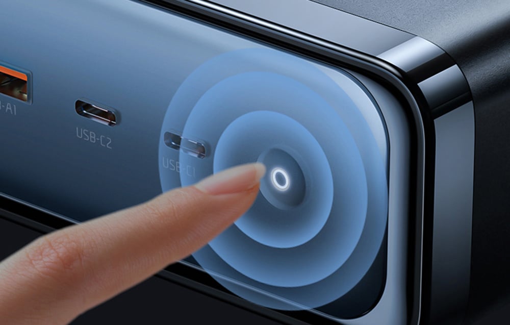USB-C1+USB-C2+(USB-A1+USB-A2) kimeneti áram: 27W+20W+15W (62W Max.).