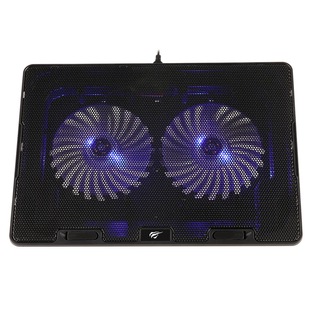 A Havit F2083 két nagy, csendes ventilátorral van felszerelve, amelyek 800-1000 RPM fordulatszámon működnek, így gondoskodva a laptop optimális hőmérsékletéről. A pad teljes felületét borító perforált fémrács maximalizálja a légáramlást, elvezeti a hőt, és hatékonyan hűti a készüléket még intenzív használat során is. A ventilátorok beépített, látványos kék LED világítása nem csak funkcionális, hanem esztétikai élményt is nyújt, modern megjelenést kölcsönözve a munkaállomásnak.