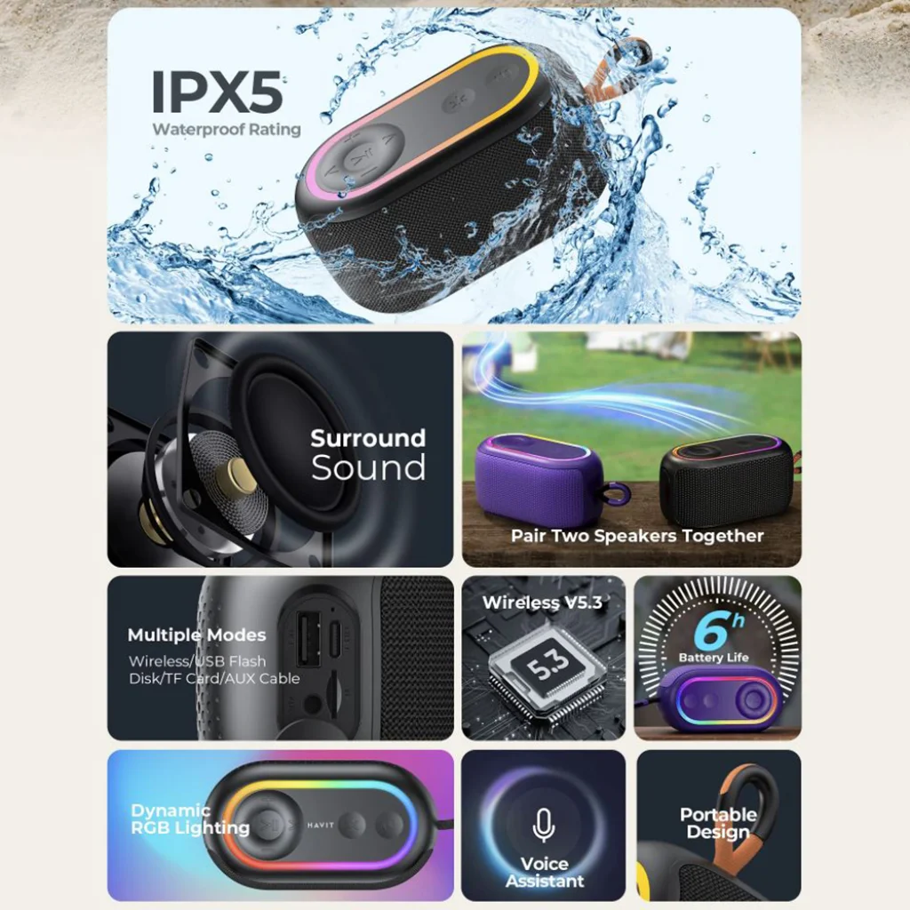 Bemutatjuk a Havit SK809BT vezeték nélküli hangszórót, amely lila színével, prémium hangzásával és sokoldalú funkcióival a tökéletes társad lesz a mindennapokban és a különleges alkalmakkor egyaránt. Éld át a zene erejét bárhol, bármikor!