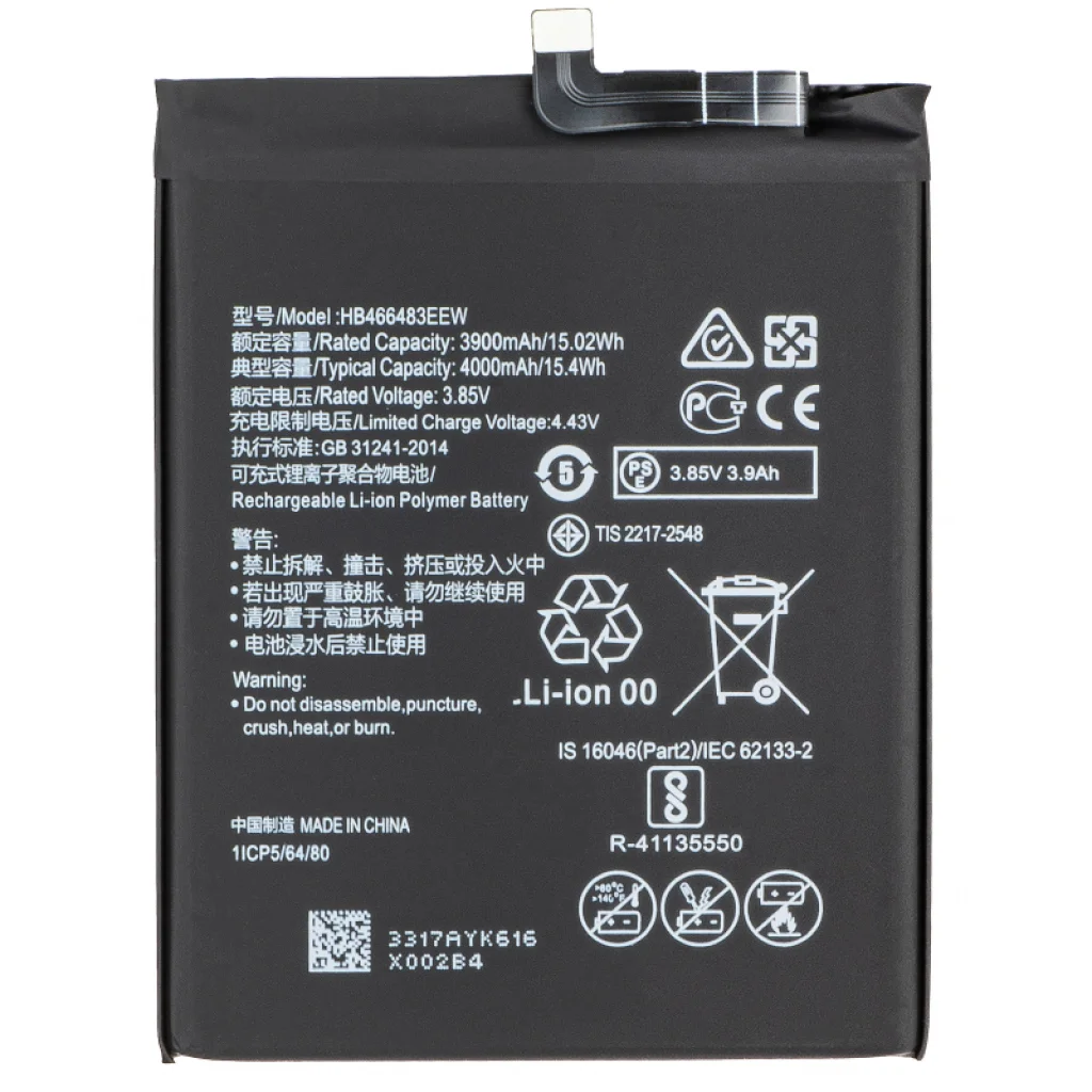 A HB466483EEW akkumulátor Honor 30S / nova 7 SE / nova 7 5G / P40 lite 5G készülékekhez készült utángyártott akkumulátor kiváló minőségű csere, amely könnyedén helyreállítja készülékének teljesítményét és megbízhatóságát. Akár akkumulátor romlással szembesül, akár csak egy megbízható tartalékra van szüksége, ez az akkumulátor költséghatékony és hatékony megoldást kínál, hogy telefonja a legjobb teljesítményt nyújtsa. Az eredetivel azonos kapacitással tervezték, amely tartós energiát és zökkenőmentes működést biztosít, megbízható és folyamatos élményt nyújtva – akárcsak a gyárilag beszerelt változat.