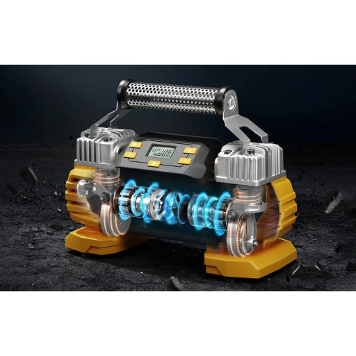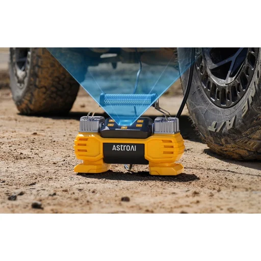 A kettős AstroAI 160 PSI kompresszor egy nagy teljesítményű eszköz, amelyet igényes felhasználók számára terveztek. Két hengerével és két fémmotorjával kivételes teljesítményt és hatékonyságot biztosít. Maximális nyomása eléri a 160 PSI-t, így gyorsan feltölti az ATV-k, SUV-k és autók gumiabroncsait. Nagy teherbírású kialakítása lehetővé teszi, hogy 40 percig folyamatosan működjön, így ideális professzionális használatra.