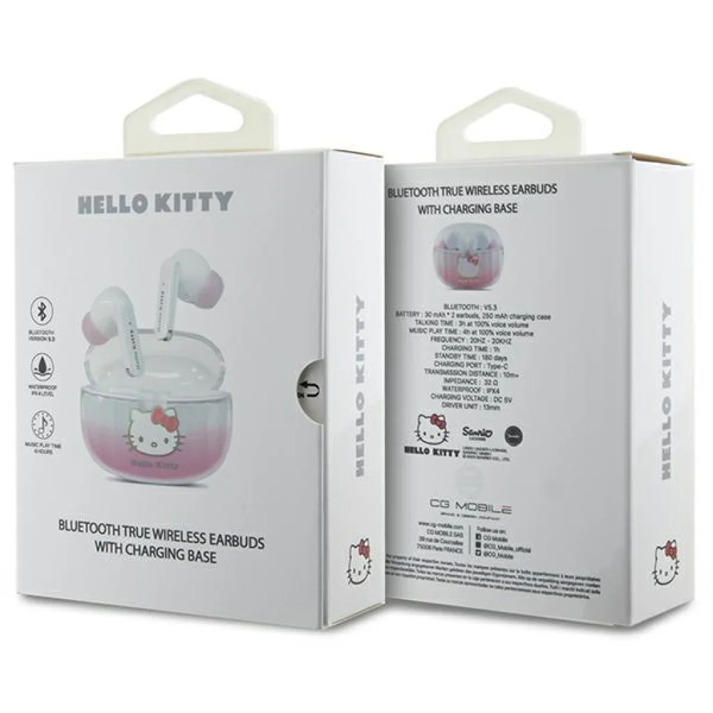 Merülj el a hangzás világában a Hello Kitty stílusú TWS fülhallgatókkal, melyeket az ikonikus márka hivatalosan is engedélyezett. Az egyedi dizájn és az előremutató funkciók az első hang után rabul ejtik a szívedet. Az elképesztően stílusos Hello Kitty TWS fülhallgatók ötvözik a divatot a legújabb hangzásbeli technológiákkal. Az elegáns, átmenetes színű dizájnú tok, amin Hello Kitty képe díszeleg, egyedi vonzerőt kölcsönöz a fülhallgatóknak. A tartós műanyagok és arany részletek kombinációja lenyűgözi mind a hangzás, mind a stílus terén.
