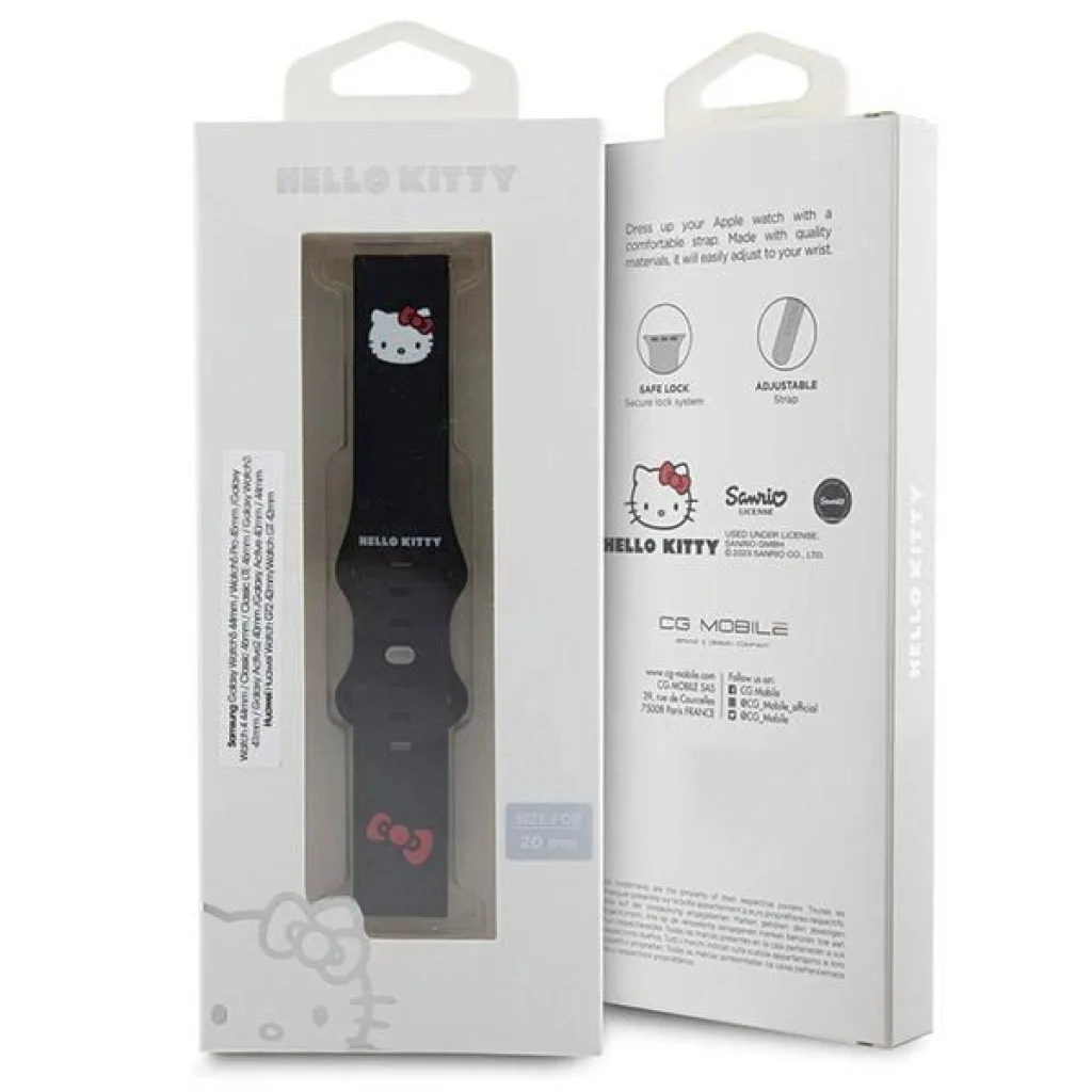 A Hello Kitty márka által aláírt, 20 mm széles, szabványos rögzítési rendszerű okosórákhoz készült szíj. A szíj rendkívül kényelmes és egyéni csuklóméretre igazítható a patentos rögzítővel és a hurokkal. A szíj a legmagasabb minőségű, puha és nagyon tartós szilikonból készült. A szilikon használata rendkívül ellenállóvá teszi a szíjat a sérülésekkel és elszíneződésekkel szemben, és nem okoz kellemetlenséget a bőrnek a mindennapos használat során. A Szilikon Kitty Fej szíj több divatos színben kapható, így szinte bármilyen stílushoz illik, és tökéletesen passzol bármilyen kompatibilis okosórához, függetlenül annak színétől. A szíj kifejező színei kifejezővé és hatásossá teszik ezt a kiegészítőt. Ez az egyedi szíj a híres Hello Kitty macska grafikájával van díszítve – használatával okosórád olyan dísz lesz, amit bárki megirigyel, aki különleges kiegészítőket értékel. A termék a Hello Kitty márka licencével készült.