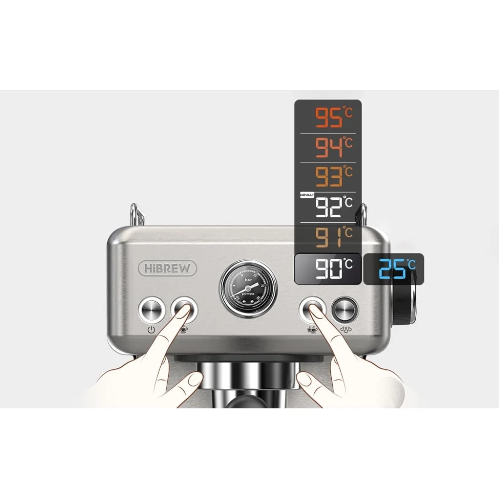 A hőmérséklet döntő fontosságú a főzet íze szempontjából, ezért a HiBREW H10A lehetővé teszi a finomhangolást 90 és 95°C között. Az alacsonyabb hőmérséklet jól működik a világos pörkölésű kávébabokkal, míg a magasabb hőmérséklet a sötét pörkölésű kávék intenzitását emeli ki. Ezenkívül az eszpresszógép 25°C-os üzemmódot kínál a hideg kávéfőzés elkészítéséhez, amely ideális a meleg napokon.