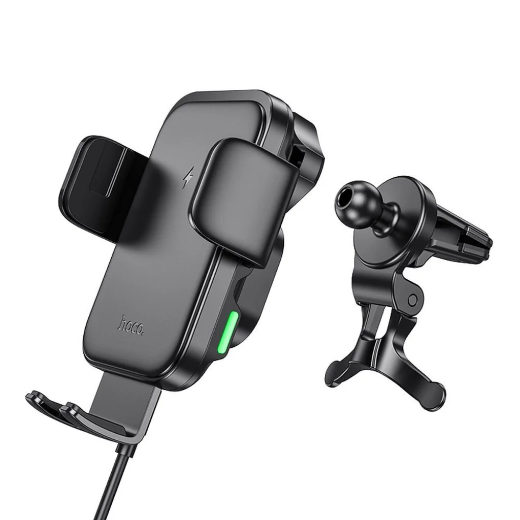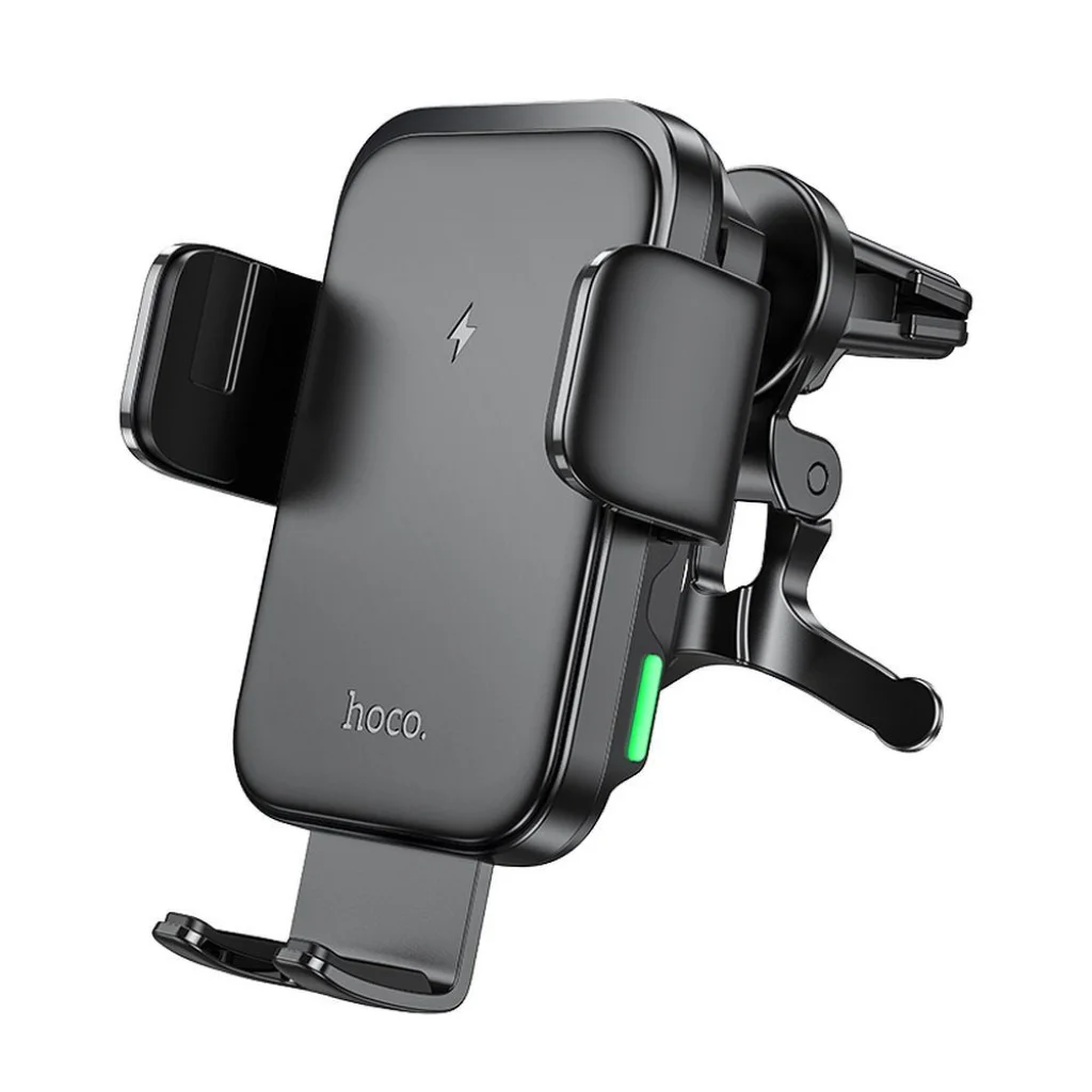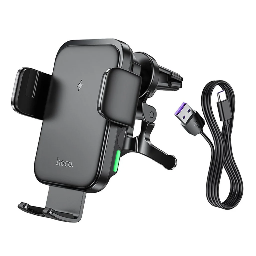 Hoco autós telefontartó vezetéknélküli töltéssel. A szellőzőrácsra szerelhető. Biztonságos okostelefon használatot tesz lehetővé vezetés közben. Magas minőségű összetevőkből készült, ellenáll a sérüléseknek és hosszú távú használatot biztosít. Lehetővé teszi a vezetéknélküli töltést akár 15 W teljesítménnyel. Kompakt, könnyű kialakítása megkönnyíti a termék hordozását és tárolását. Specifikáció: