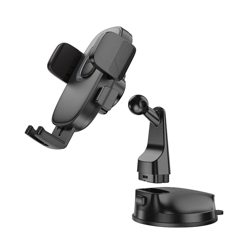 Hoco autós tartó tapadókoronggal a műszerfalra. A beépített állítórendszer lehetővé teszi a tartó felhasználói igények szerinti beállítását. A befogó szélességének és a kar hosszának állításával a telefont bármilyen pozícióba helyezhetjük. A tartó többször is használható: a rögzítési hely megváltoztatása előtt csak öblítse le a tapadókorongot folyó víz alatt, várjon meg, amíg megszárad, és helyezze vissza. A kiegészítő nem mérgező, környezetbarát anyagokból készült. A szilikon betétek megvédik a készülék finom burkolatát a karcolásoktól. Kompakt méretének és a rögzítési hely szabad megválasztásának köszönhetően a kiegészítő nem zavarja a kilátást, így teljes látási viszonyokat biztosít. Specifikáció: