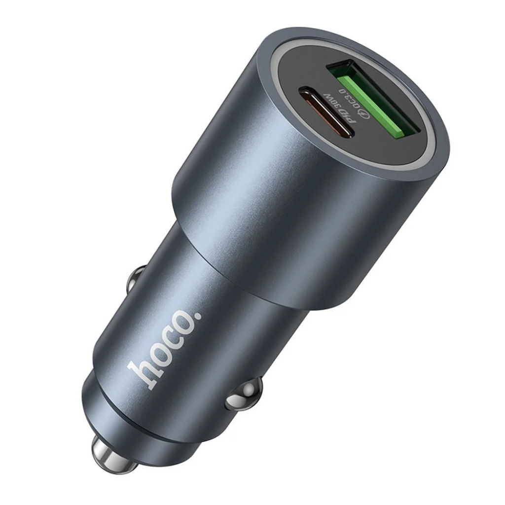 A Hoco Z60 autós töltő gyors töltési funkcióval, dupla kimenettel: USB-C, USB-A. Lehetővé teszi a mobil eszközök gyors töltését az autóban. A töltő dupla USB-C (30 W) és USB-A (18 W) kimenettel van felszerelve, lehetővé téve két eszköz egyidejű töltését. A termék támogatja a PD, QC3.0, FCP, AFC gyors töltést és más gyors töltési megoldásokat. Alumínium ötvözetből és PC-ből készült, a töltő rendkívül tartós és ellenáll a sérüléseknek. Az intelligens felismerés lehetővé teszi az áram megfelelő illesztését az adott eszközhöz, biztosítva a biztonságos használatot. Specifikáció: