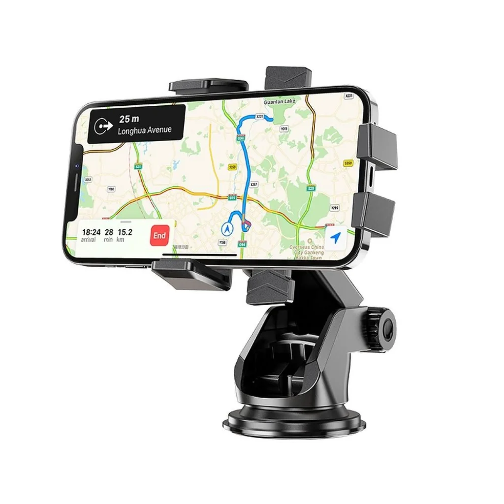 Univerzális autós tartó a múszerfalra vagy a szélvédőre szerelhető. Az állítható kar mozgatható fejjel 360°-os mozgási tartományban lehetővé teszi a készülék helyzetének tökéletes beállítását az Ön igényei szerint, függőlegesen vagy vízszintesen. A mozgatható fejjel ellátott, kihúzható, állítható kar lehetővé teszi, hogy a tartozékot és a benne szerelt eszközt tetszés szerint állítsa be hogy ne akadályozza a kilátást és kényelmesen tudja használni a navigációt. A tapadókorongos tartó lehetővé teszi a tartó rögzítését a műszerfalra vagy a szélvédőre. A terminálokon speciális betétek védik a készüléket a karcolástól utazás közben.