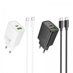 Hoco N61 hálózati töltő gyors töltési funkcióval és kettős kimenettel. Lehetővé teszi a mobil eszközök gyors feltöltését. A termék tartalmaz egy 1 méteres USB-C - USB-C kábelt. A töltő kettős kimenettel rendelkezik: USB-C (20 W) és USB-A (18 W), így egyszerre 2 eszköz tölthető. A termék támogatja a gyors töltési megoldásokat, mint a PD, QC 3.0, FCP, AFC. PC-ből készült, ezáltal rendkívül tartós és ellenálló a sérülésekkel szemben. Az intelligens felismerés lehetővé teszi az áram illesztését az adott eszközhöz, biztosítva a biztonságos használatot. A töltő egy 1 méter hosszú, 60 W teljesítményű USB-C - USB-C kábellel érkezik. Specifikáció: