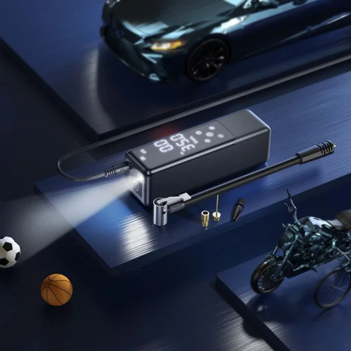 1, Anyag: ABS+ szilikon 2. Felület technológia: szatén + polírozás 3, Méret: 5252171mm; Súly: 510g (kábel nélkül); Kábel hossza: 3m 4. Üzemidő: 15 perc folyamatos használat, körülbelül 9 perc egy teljes 205/R16 gumiabroncs felfújása 5, DC kefés motor: 20 hengeres mozgás; Maximális légnyomás ≤ 3,5 bar 6. Támogatja az autó, motor, kerékpár, kosárlabda négy felfújási módját
