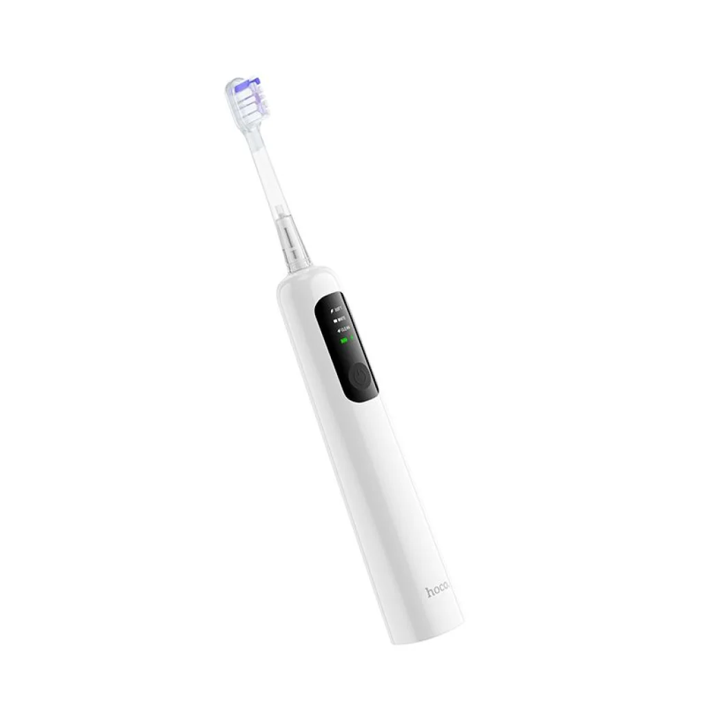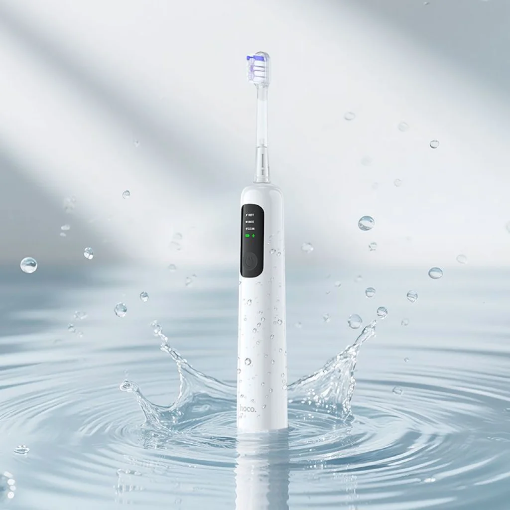 A Hoco HP64 elektromos fogkefe egy szónikus fogkefe 2000 mAh kapacitású akkumulátorral, IPX7 vízállósággal és három üzemmóddal: kímélő, fehérítő és mélytisztító. A hosszú üzemidő (körülbelül 75 nap) és a két cserélhető kefefej kényelmes megoldást nyújt a mindennapi szájhigiénia fenntartására otthon és útközben. A szónikus technológia 26,000-33,000 rezgéssel dolgozik, ami támogatja a hatékony lepedékeltávolítást és a fogak és az íny alapos tisztítását. Emellett a kefe mozgásának és frekvenciájának tartománya segíti a kefét, hogy az egyéni igényekhez igazodjon. A három fogmosási mód lehetőséget ad arra, hogy a fogmosás módszerét a legjobban az igényeidhez igazítsd. A kímélő mód a mindennapi, gyengéd fogmosáshoz ideális, a fehérítő mód az intenzívebb fogfelszíni tisztítást segíti, míg a mélytisztító mód azoknak nyújt opciót, akik erősebb frissítő hatásra vágynak. A beépített 2000 mAh kapacitású akkumulátor nagyon hosszú üzemidőt biztosít – körülbelül 75 napi használatot, ha naponta kétszer használod, alkalmanként 2 percig. A teljes feltöltés körülbelül 6 órát vesz igénybe, így a fogkefe külső használatra is alkalmas. Az IPX7 vízállóság növeli a mindennapi használat kényelmét és biztonságát a fürdőszobában. Az ABS ház könnyű és kézre álló, a karcsú kialakítás pedig kényelmesen illeszkedik a kézbe fogmosás közben. A készlet két kefefejet tartalmaz: egy hatékony tisztító kefefejet és egy világító tisztító kefefejet. A készlet tartalmaz egy töltőkábelt is, így a készülék azonnal használható a dobozból kivéve.