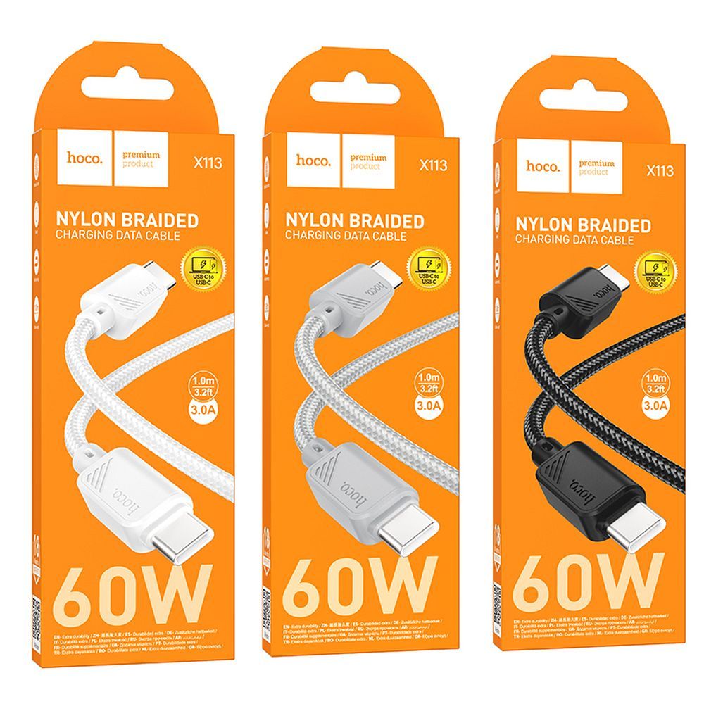 A Hoco X113 gyors töltőkábel USB-C - USB-C csatlakozóval, 1 méter hosszú. Lehetővé teszi a gyors töltést akár 60 W teljesítménnyel és adatátvitelt is biztosít. Támogatja a Power Delivery és a Quick Charge 3.0 protokollokat. Töltse fel akár nagyméretű eszközeit is villámgyorsan! A kábel kompatibilis a Power Delivery és Quick Charge 3.0 protokollokkal, és alkalmas számos különböző eszköz ellátására akár 60 W teljesítményig. A gyors töltés azt jelenti, hogy okostelefonját (vagy más eszközét) rövid idő alatt teljesen feltöltheti. Elsődleges a biztonság: a kábel csatlakozóinak hőmérséklete állandó szinten marad, így nem kell aggódnia a túlmelegedés és az akkumulátor károsodása miatt - akkor sem, ha az eszközt töltés közben használja. Az 1 méteres hosszúság kényelmes használatot biztosít az okostelefon töltése közben. Specifikáció: