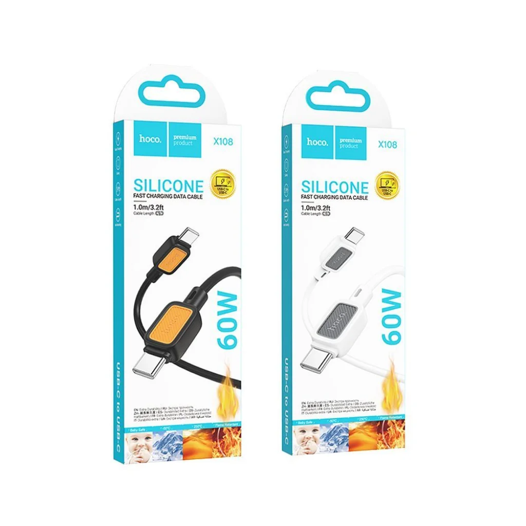 Hoco X108 gyors töltésű kábel USB-C - USB-C csatlakozóval, 1 méter hosszú. Lehetővé teszi a gyors töltést akár 60 W teljesítményig, valamint az adatátvitelt. Támogatja a Power Delivery és Quick Charge 3.0 protokollokat. Töltsd fel még a nagyobb eszközöket is pillanatok alatt! A kábel kompatibilis a Power Delivery és Quick Charge 3.0 protokollokkal, és alkalmas számos különböző eszköz energiaellátására, amelyek teljesítményszükséglete 60 W-ig terjed. A gyors töltés azt jelenti, hogy rövid idő alatt teljesen feltöltheted okostelefonod (vagy más eszközöd) akkumulátorát. Első a biztonság: a kábel csatlakozóinak hőmérséklete állandó szinten marad, így nem kell aggódnod a túlmelegedés és az akkumulátor károsodása miatt - még akkor sem, ha használod az eszközt töltés közben. Az 1 méter hosszú kábel kényelmes használatot biztosít a okostelefon töltése közben. Specifikáció: