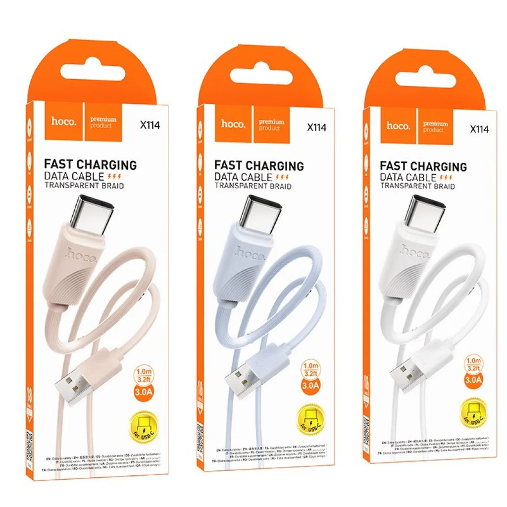 A Hoco X114 kábel USB-A és USB-C csatlakozóval rendelkezik. Támogatja a töltést és az adatátvitelt. A sokoldalú kábel lehetővé teszi az eszközök töltését és az adatátvitelt is. Az 1 m hosszú kábel ellenálló a sérülésekkel és törésekkel szemben, így az eszköz sokáig használható lesz. Specifikáció:
