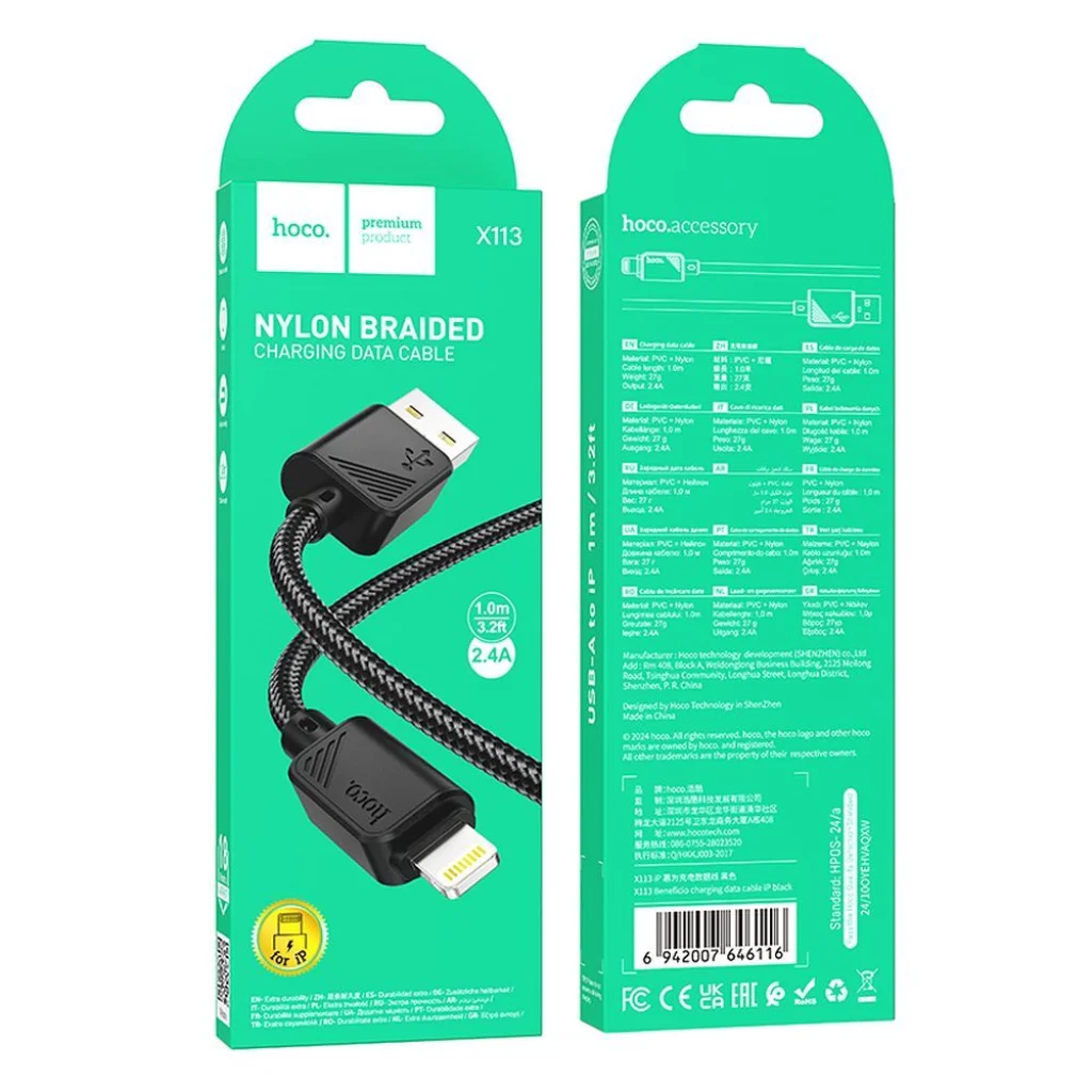 A Hoco X113 kábel USB-A - Lightning csatlakozóval rendelkezik. Támogatja a töltést és az adatátvitelt. A sokoldalú kábel alkalmas mind az eszközök töltésére, mind az adatok szabad átvitelére. Az 1 m hosszú kábel ellenáll a sérüléseknek és a töréseknek, így az eszköz hosszú ideig szolgál.