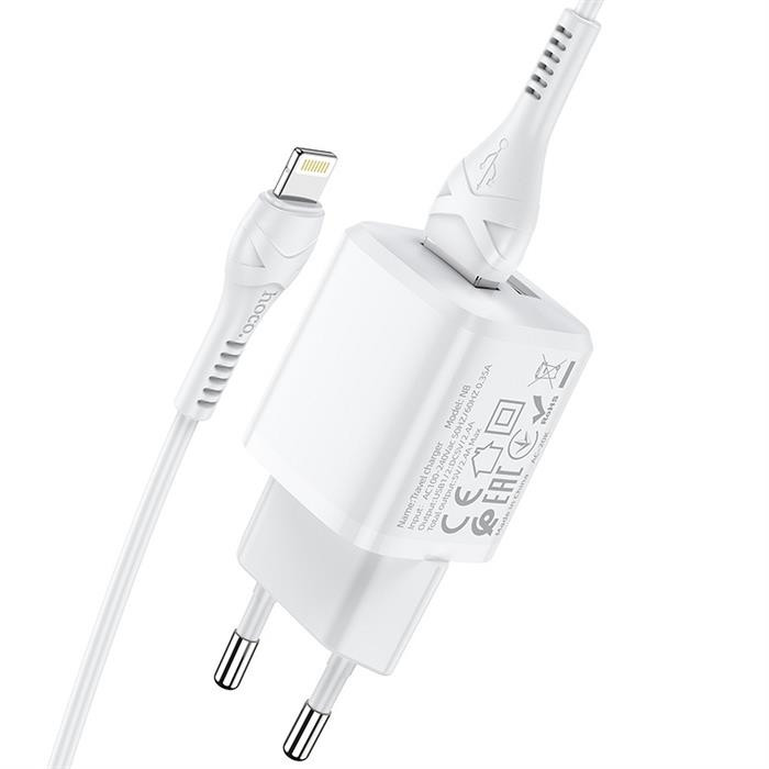 Töltő kettős USB-porttal. Lehetővé teszi, hogy egyszerre két eszközt töltsön. Támogatja a gyorstöltést. A kompakt méret rendkívül kényelmes az utazáshoz és könnyen tárolható. Lightning kábelt tartalmaz. Anyaga tűzálló PC. Teljesítmény: 5V-2.4A, Egyetlen port: 5V-2.4A