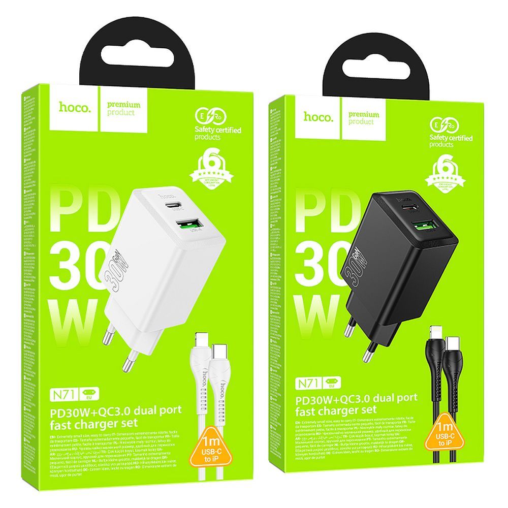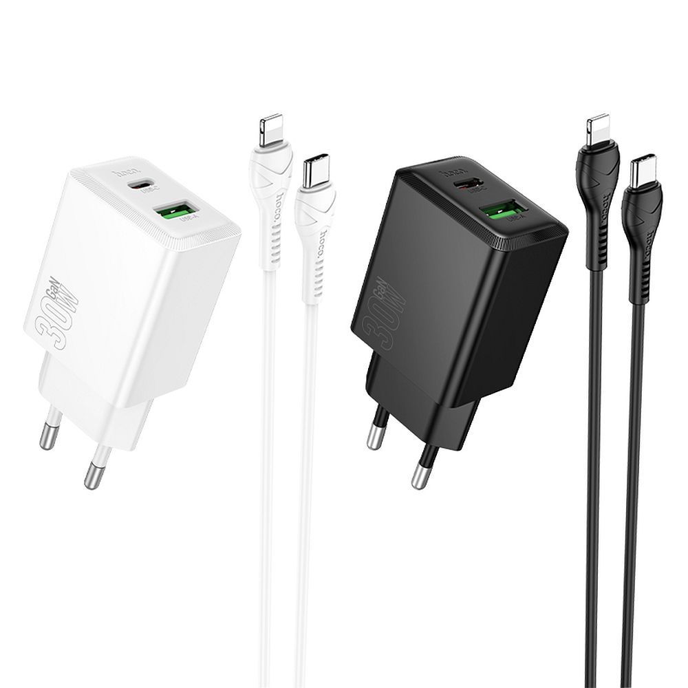 Hoco USB A + USB C QC3.0 PD AFC 3A 30W töltő + USB C - USB C kábel N71 fehér