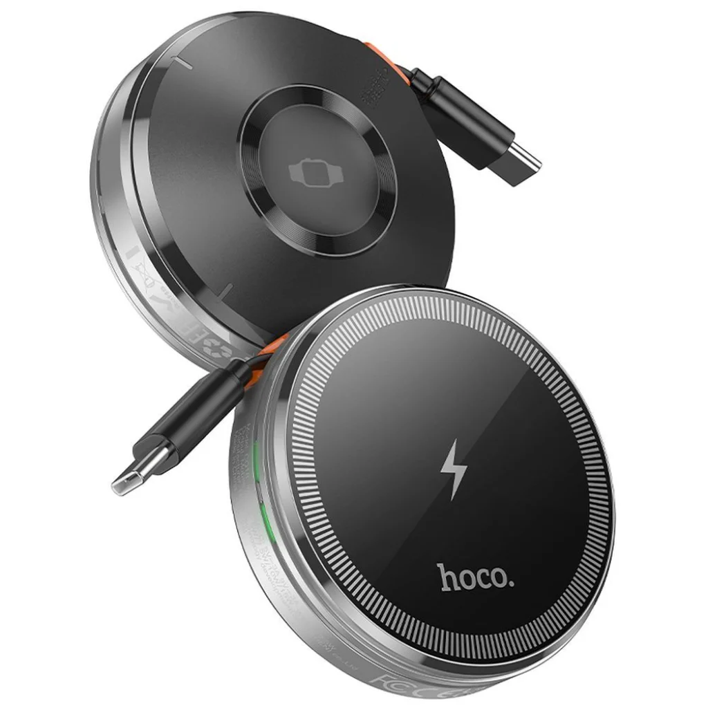 1. Type-C bemenet: 5V/3A, 9V/3A 2. Kimenet: telefon: 5W/7.5W/10W/15W (Magsafe: 7.5W), Óra: 2.5W (Kompatibilis iWatch 1-9, SE/SE2, Ultra/Ultra2) 3. Külön PD töltő szükséges 4. Anyag: alumínium ötvözet ház 5. Méret: 61 (átmérő) 21mm, súly: 96g; kábel hossza: 80cm