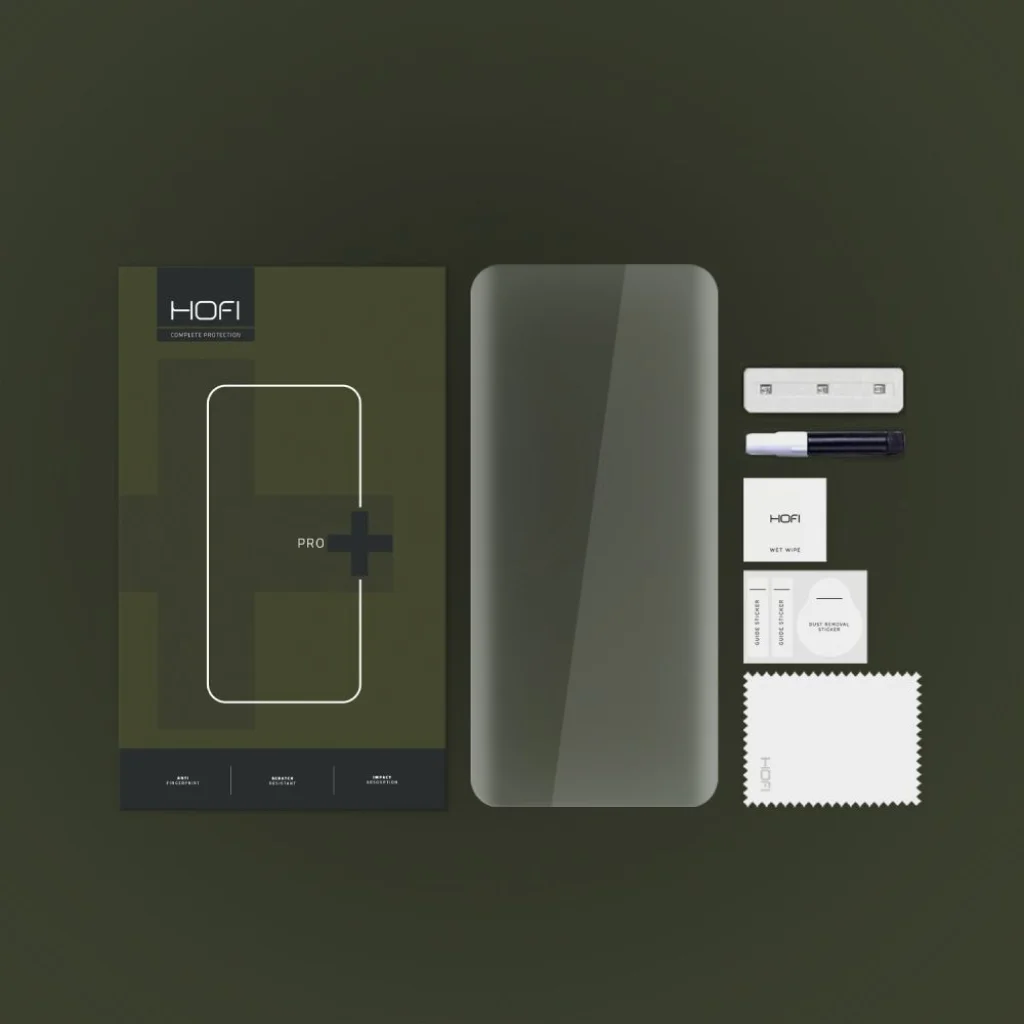 A Hofi UV Glass Pro+ edzett üveg védi a kijelző jelentős részét, 9H keménységű felülettel rendelkezik, ezért rendkívül ellenálló a karcolásokkal szemben még éles tárgyak érintkezése esetén is, ráadásul olajtaszító bevonattal van ellátva, amely csökkenti az ujjlenyomatok mennyiségét. Az UV modell folyékony anyaggal van rögzítve a kijelző teljes felületén, majd UV lámpa segítségével az anyag megkeményedik. Ilyen kombinációval ideális simaságot, tisztaságot és érzékenységet érhetünk el. Az installáció könnyű és kellemes a felhasználó számára.