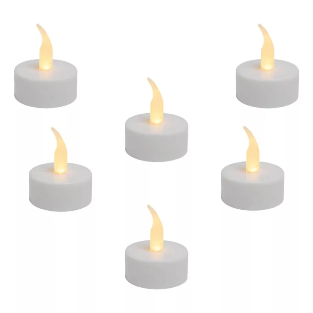 Ez a narancssárga pislákoló LED-del felszerelt teamécses valósághűen utánozza a gyertya lobogását, így kellemes, meleg fényt biztosít minden helyiségben. A termék praktikus mérete – 3,8 cm átmérő és 4,5 cm magasság – lehetővé teszi, hogy bármely felületen könnyedén elhelyezze. A tápellátást egy 3 V-os CR2032 gombelem biztosítja, amelyet a csomag tartalmaz, így a mécsesek azonnal használhatók. A termék hat darab teamécsest tartalmazó bliszter csomagban érkezik, így egy vásárlással több helyiség dekorálása is megoldható.