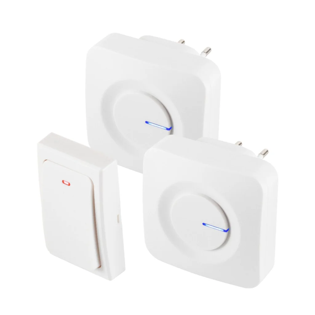 - 1 nyomógomb + 2 csengő a csomagban, több helyiségben is hallható jelzéssel