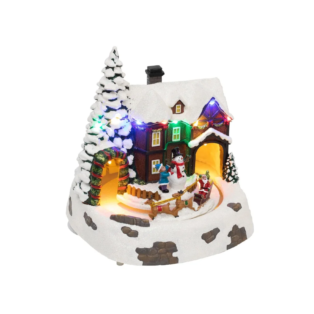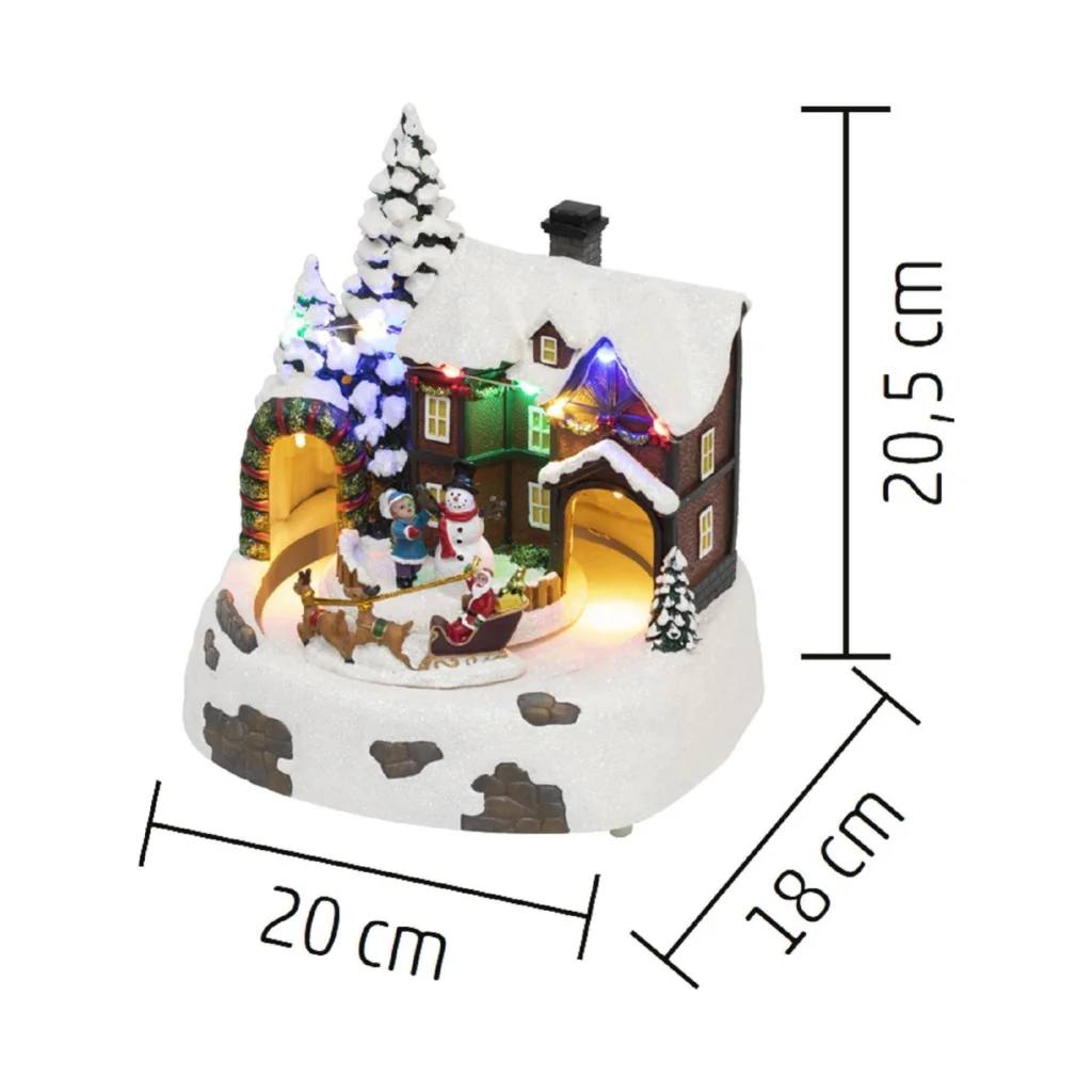 A termék beltéri kivitelben készült, így bármely szobájában pompázhat. A fehér LED világítás finoman emeli ki a házikó részleteit, míg a körbejáró rénszarvasszán varázslatosan életre kelti környezetét. A tápellátást 3 x 1,5 V (AA) elem biztosítja, melyek nem tartoznak a csomaghoz.