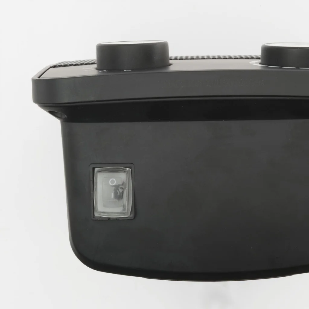 Az elegáns fekete készülék két fűtési fokozattal rendelkezik, 900 W és 1800 W teljesítménnyel, így a hőmérsékletet igényei szerint állíthatja be. Az álló elhelyezésű fűtőtest kompakt méretével (22 x 32 x 14,5 cm) és könnyű súlyával könnyedén elhelyezhető és áthelyezhető bármelyik helyiségben. A mechanikus termosztát lehetővé teszi a pontos hőmérséklet beállítását, míg a 70°-os oszcillálás biztosítja a meleg levegő egyenletes eloszlását a szobában.