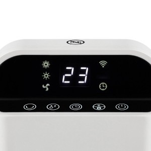 Ez az elegáns, fehér színű készülék két fűtési fokozattal rendelkezik: 1000 W és 2000 W, így könnyedén szabályozhatja a hőmérsékletet az igényeinek megfelelően. A készülék álló elhelyezésű, kompakt méretének (23 x 56 x 15 cm) és könnyű súlyának (2 kg) köszönhetően bárhol elhelyezhető a lakásban. Ezt a modern készüléket az okostelefonos alkalmazásnak köszönhetően távolról is működtetheti az otthoni WIFI-s környezetben de távirányítóval is vezérelhető, és rendelkezik 12 órás kikapcsolásidőzítéssel, ami lehetővé teszi, hogy előre beállítsa a fűtés időtartamát, növelve a kényelmet és az energiatakarékosságot. A készülék 15-45 °C közötti hőmérséklet-tartományban állítható be, így mindig az Ön igényeinek megfelelő meleget biztosítja.