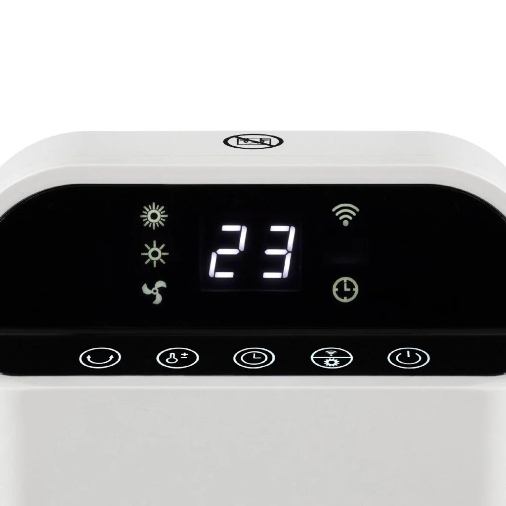 Ez az elegáns, fehér színű készülék két fűtési fokozattal rendelkezik: 1000 W és 2000 W, így könnyedén szabályozhatja a hőmérsékletet az igényeinek megfelelően. A készülék álló elhelyezésű, kompakt méretének (23 x 56 x 15 cm) és könnyű súlyának (2 kg) köszönhetően bárhol elhelyezhető a lakásban. Ezt a modern készüléket az okostelefonos alkalmazásnak köszönhetően távolról is működtetheti az otthoni WIFI-s környezetben de távirányítóval is vezérelhető, és rendelkezik 12 órás kikapcsolásidőzítéssel, ami lehetővé teszi, hogy előre beállítsa a fűtés időtartamát, növelve a kényelmet és az energiatakarékosságot. A készülék 15-45 °C közötti hőmérséklet-tartományban állítható be, így mindig az Ön igényeinek megfelelő meleget biztosítja.