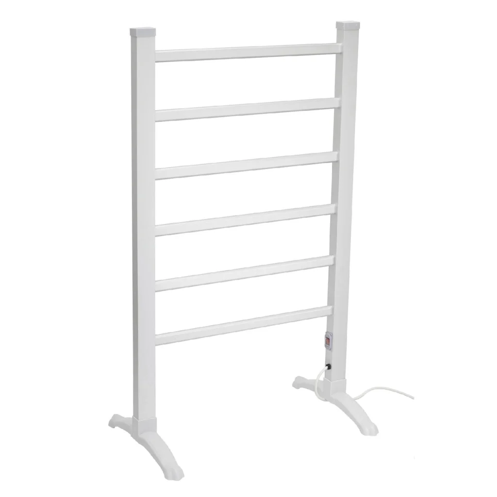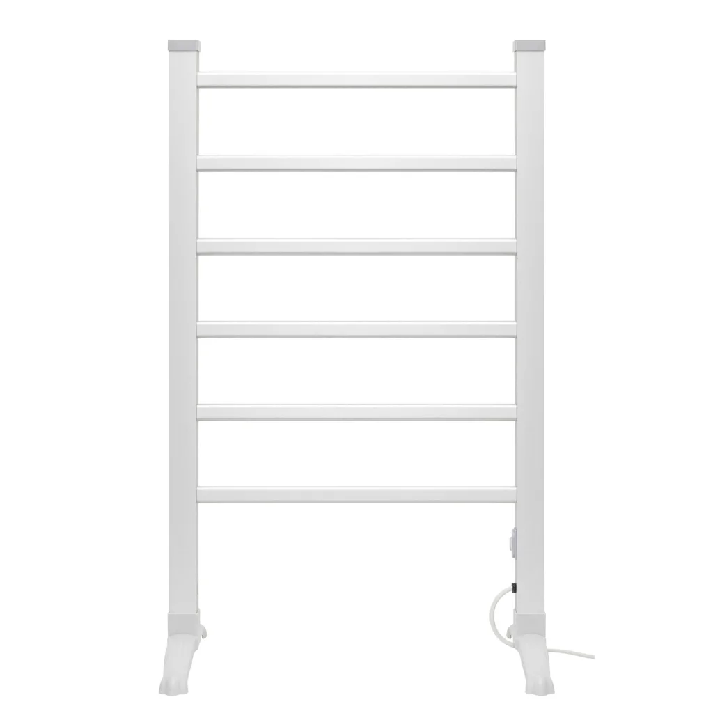 A szabadon álló kivitel könnyedén elhelyezhető bármelyik helyiségben, legyen szó fürdőszobáról, hálószobáról vagy akár nappaliról. A 6 darab fűtött alumínium rúd egyenletes hőleadást biztosít, így a ruhák gyorsan és egyenletesen száradnak. A 90 W teljesítmény energiatakarékos működést garantál, miközben a szárítási hatékonyságon nem esik csorba.