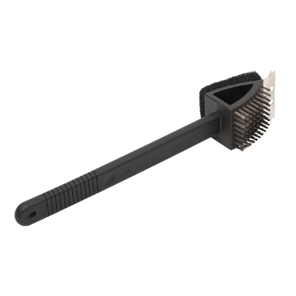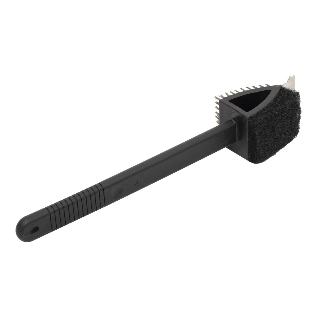 A kemény szivacsréteg kíméletes, mégis hatékony módja a felületek áttörlésének, miközben a fémsörtés kefe gondoskodik a lerakódások fellazításáról és eltávolításáról. A kefe végén található rozsdamentes kaparófej pedig célzottan távolítja el az odaégett maradványokat, akár a rácsok közül is. A különböző tisztítóelemek egymást kiegészítve segítik a grillező felület tökéletes tisztaságának elérését.