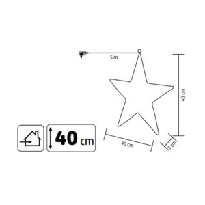A 40 x 7 x 40 cm méretű fém csillag formája letisztult eleganciát sugároz, amely tökéletes kiegészítője lehet az ünnepi dekorációnak vagy egy modern enteriőrnek. A 320 melegfehér micro LED egyenletesen oszlik el a szerkezeten, így kellemes, vibrálásmentes fényt biztosít, amely feldobja a nappalit, hálószobát vagy akár az étkezőt.