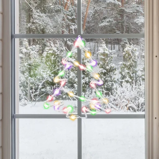 Ez a dekoráció 35 db Ø5mm színes LED-del van felszerelve, amelyek hangulatos, ünnepi fényt árasztanak. A 1,5 méteres fehér tápkábel az alján helyezkedik el, így könnyen csatlakoztatható az áramforráshoz anélkül, hogy zavaró lenne. A termék mérete 33 x 28 cm, így ideális méretű, hogy bármelyik ablakban elhelyezze.