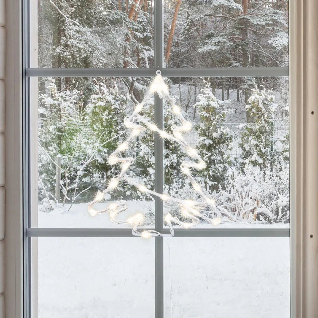 Ez a dekoráció 35 db Ø5mm melegfehér LED-del van felszerelve, amelyek kellemes, ünnepi fényt árasztanak. A 1,5 méteres fehér tápkábel az alján helyezkedik el, így könnyen csatlakoztatható az áramforráshoz anélkül, hogy zavaró lenne. A termék mérete 33 x 28 cm, így ideális méretű, hogy bármelyik ablakban elhelyezze.