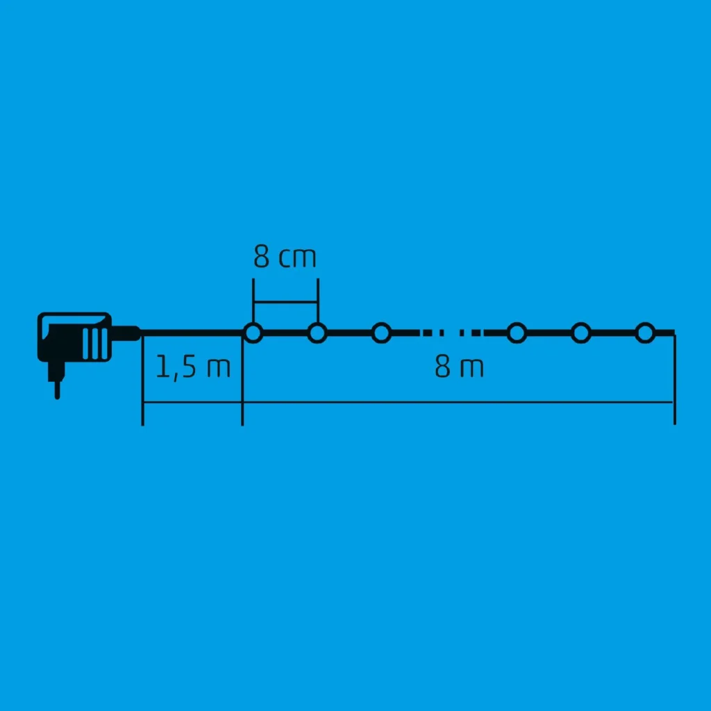 A zöld vezeték diszkréten illeszkedik karácsonyfája környezetébe, míg a beltéri hálózati adapter garantálja a könnyű és biztonságos csatlakoztatást otthonában.
