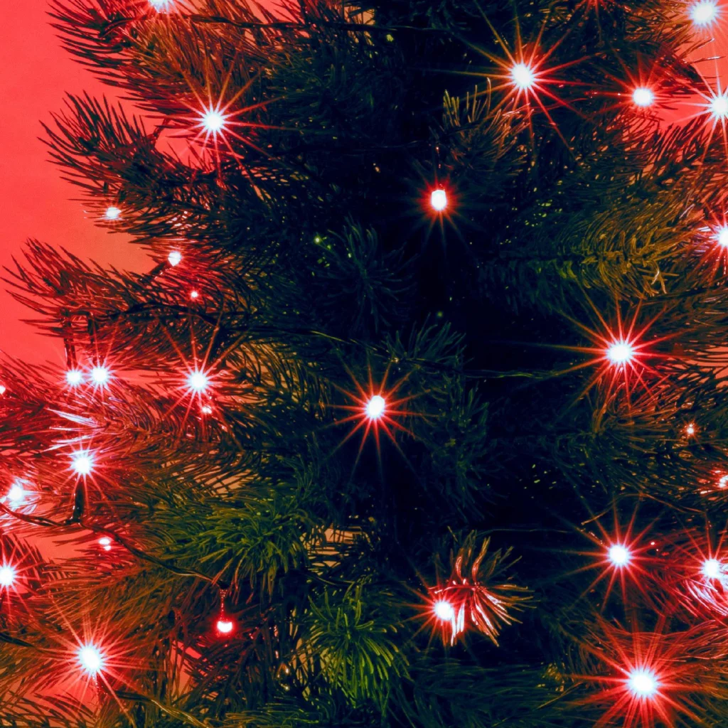A zöld vezeték jól illeszkedik a karácsonyfa környezetébe, így egy diszkrét és modern vizuális élményt nyújt.